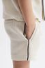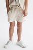 The ecru Dexter shorts are crafted from a textured cotton blend and designed with side stripes, a nod towards modern, sportive styling. An elasticated waistband and pockets are added for a practical note. Pair with the matching top for a refined yet relaxed edit. Cotton blend. Textured fabrication. Elasticated, drawstring waistband. Side slip pockets. Jetted pocket to reverse. Side stripe detailing. Reiss partners with Better Cotton to improve cotton farming globally. Better Cotton is sourced via a system of Mass Balance and is not physically traceable to end products.
