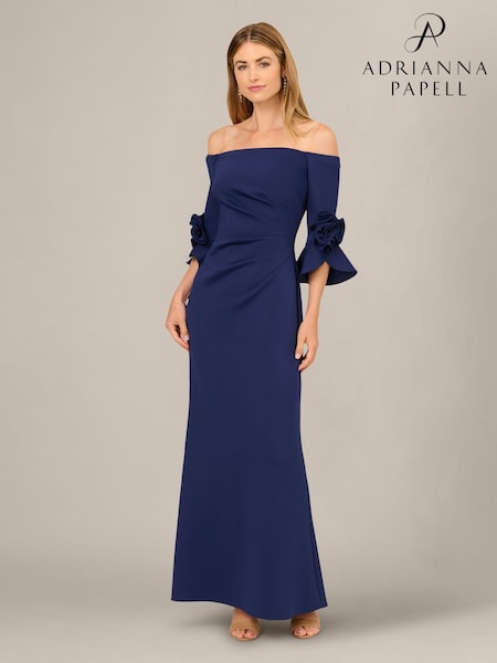 Adrianna Papell Blue Rosette Scuba Crepe Gown