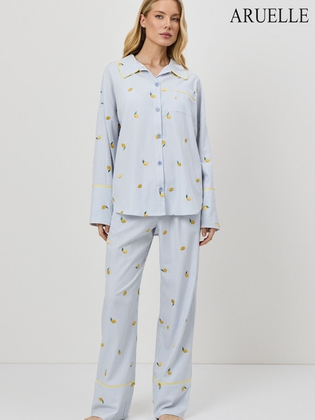 Aruelle Blue Lenora Embroidered Striped Long Pyjamas Set