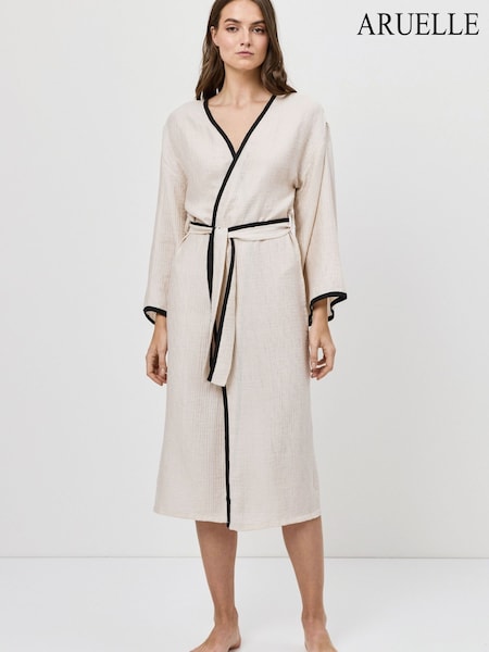 Aruelle Cream Horizon Lightweight Mid Length Wrap Gown With Contrast Trim
