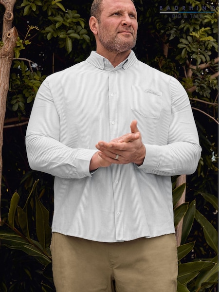 BadRhino Big & Tall White/Grey Stripe Oxford Long Sleeve Shirt
