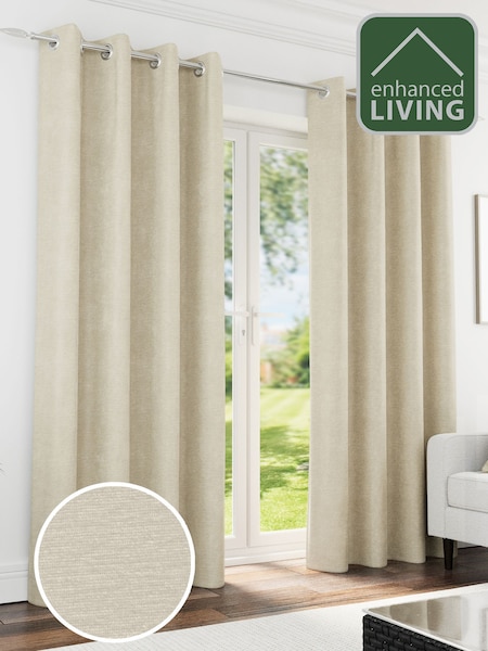 Enhanced Living Cream Knightsbridge Chenille Blackout Eyelet Curtains
