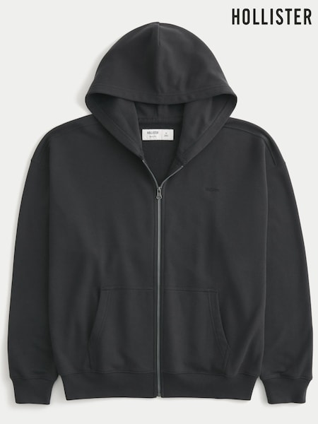 Hollister Black Terry Logo Zip-Up Hoodie