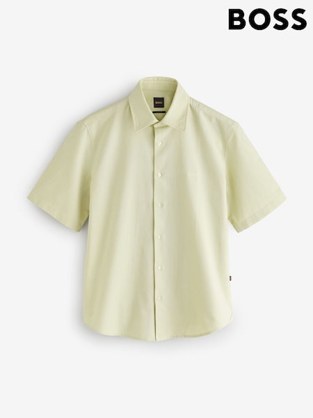 BOSS Cream Regular Fit Short Sleeve Cotton Shirt