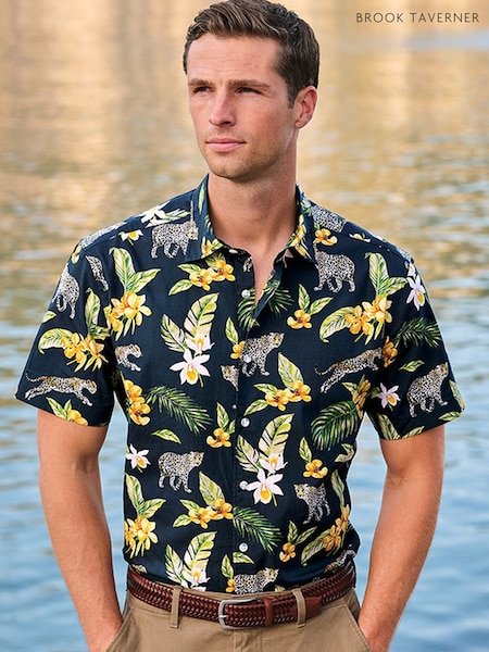 Brook Taverner Black Leopard Short Sleeve Shirt