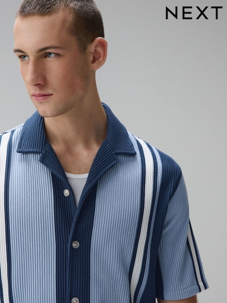 Blue Textured Stripe Short Sleeve Shirt
