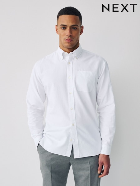 White Regular Fit Button Down Easy Iron Oxford Shirt