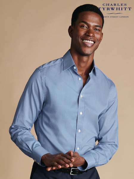 Charles Tyrwhitt Blue Slim Fit Non-Iron Puppytooth Shirt
