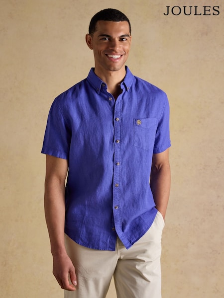 Joules Blue 100% Linen Short Sleeve Classic Fit Shirt