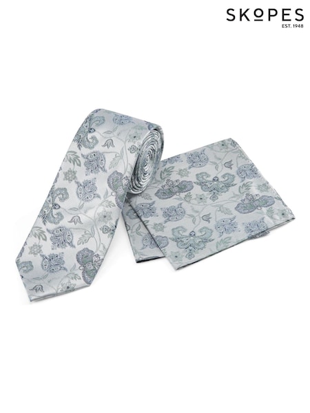 Skopes Silver Paisley Silk Tie and Pocket Square Set