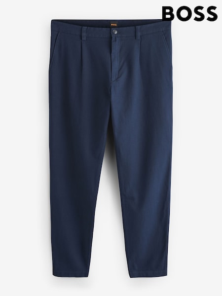 BOSS Blue Pleated Detail Tapered Fit Chino Trousers
