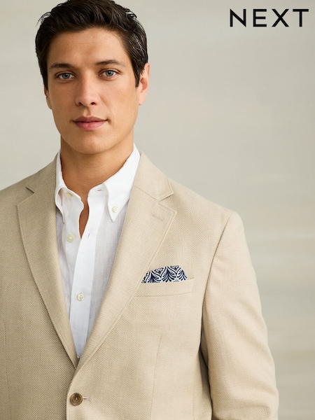 Neutral Regular Fit Linen Blend Check Suit Jacket
