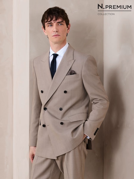 Neutral Double Breasted Tailored N.Premium Merino Wool Blend Texture Suit Jacket