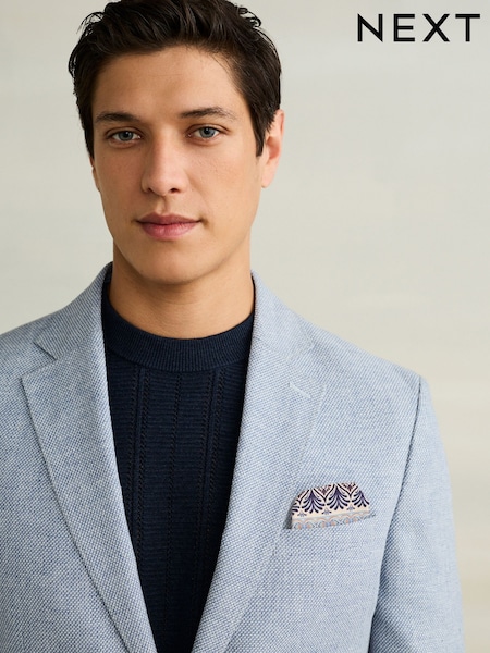 Chambray Blue Slim Fit Textured Linen Blend Blazer