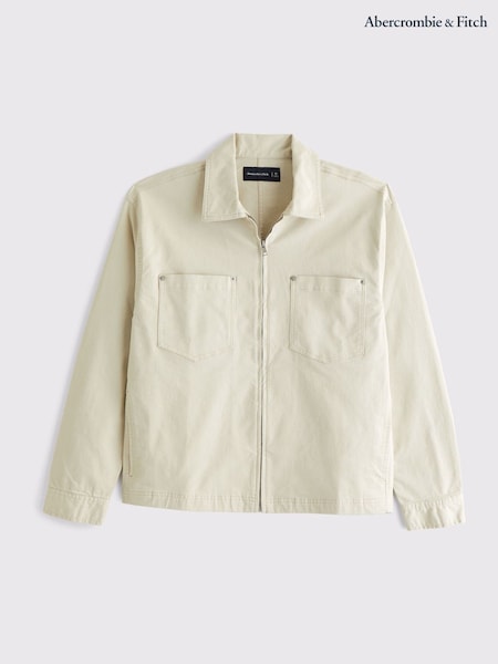 Abercrombie & Fitch Cream Zip Shirt Jacket