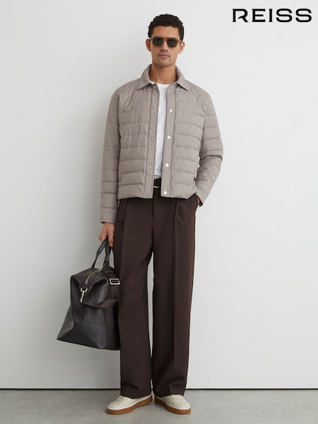 Reiss Mink Brown Harrison Quilted Hybrid Press-Stud Jacket