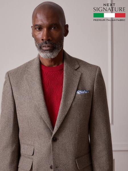 Taupe Brown Slim Fit Signature Wool Blend Herringbone Nova Fides Blazer