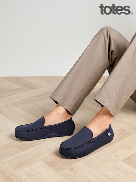 Totes Blue Isotoner Ribbed Moccasin Slippers
