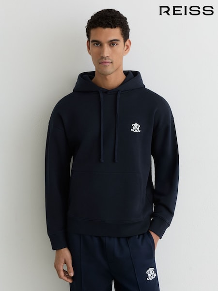 Reiss Navy Conlin Monogram Embroidered Relaxed Hoodie