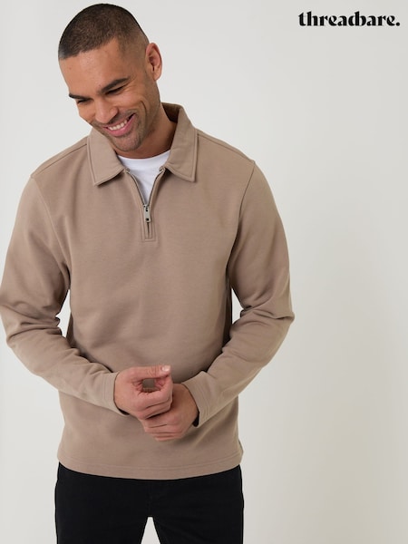 Threadbare Brown Quarter Zip Collared Sweatshirt
