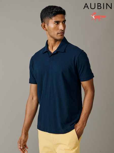 Aubin Blue Baysdale Open Collar Polo Shirt