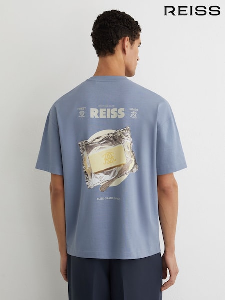 Reiss Soft Blue Walton Monogram Butter Relaxed-Fit T-Shirt