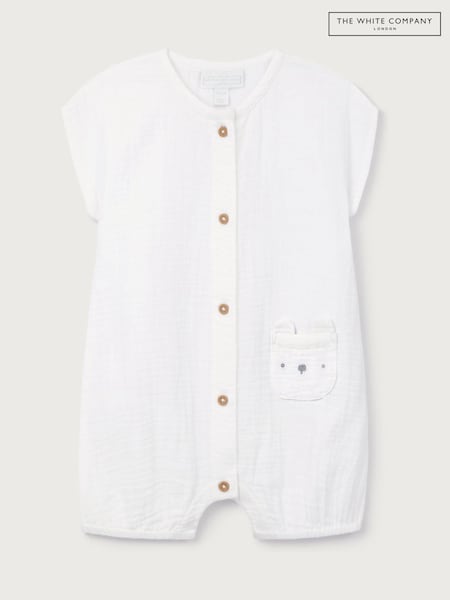 The White Company White Crinkle Cotton Bear Pocket Romper