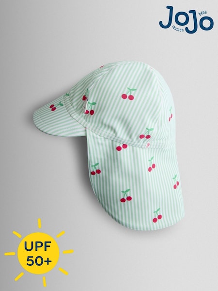 JoJo Maman Bébé Green Cherry Stripe UV Sun Protection Swim Hat