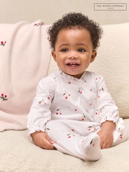 The White Company Pink Cotton Cherry Frill Wrap Sleepsuit