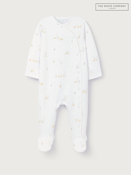 The White Company White Quilted Cotton Blend Walking Ducklings Wrap Sleepsuit