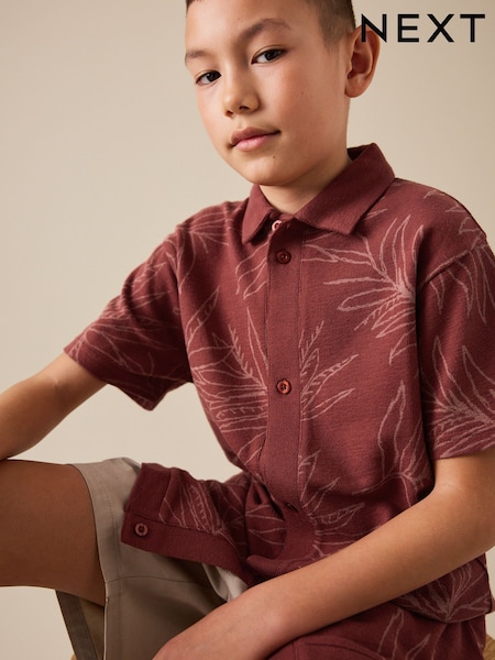 Rust Red Button Through Short Sleeve Jersey Shirt (3-16yrs)