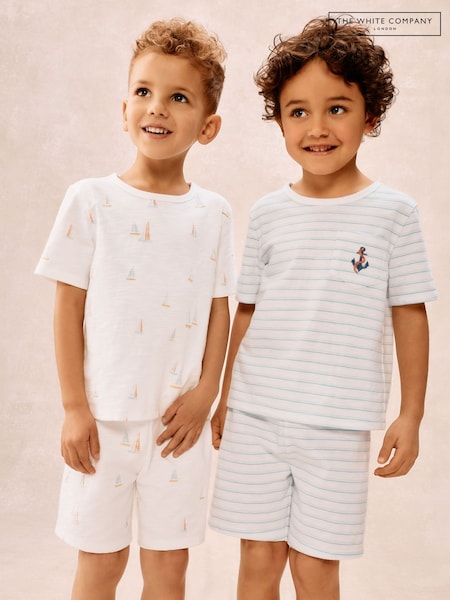 The White Company White Cotton Blend Watercolour Boat & Stripe Relaxed Pyjamas Set 2 Pack