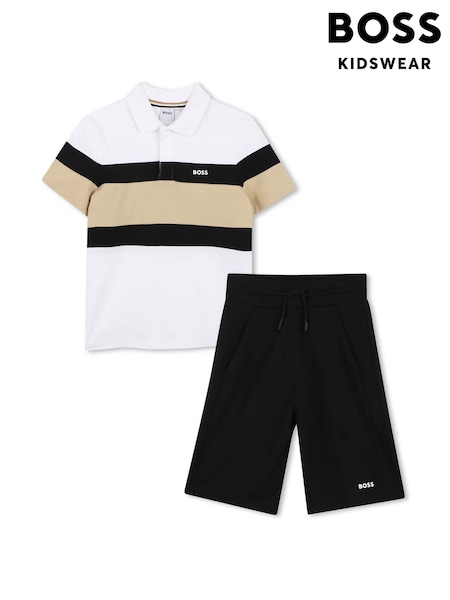 BOSS White Logo Polo Shirt and Bermuda Shorts Set