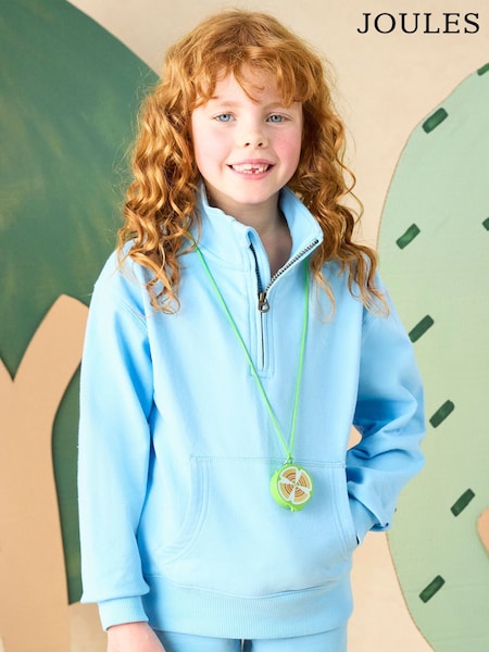 Joules Kids' Alfie Pastel Blue Quarter Zip Sweatshirt