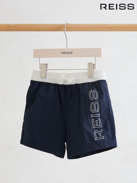 Reiss Navy Ley 3-9 yrs Colour-Block Logo Swim Shorts
