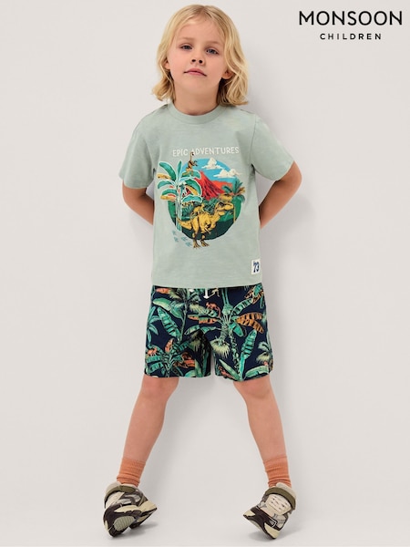 Monsoon Green Dinosaur Print T-Shirt & Shorts Set