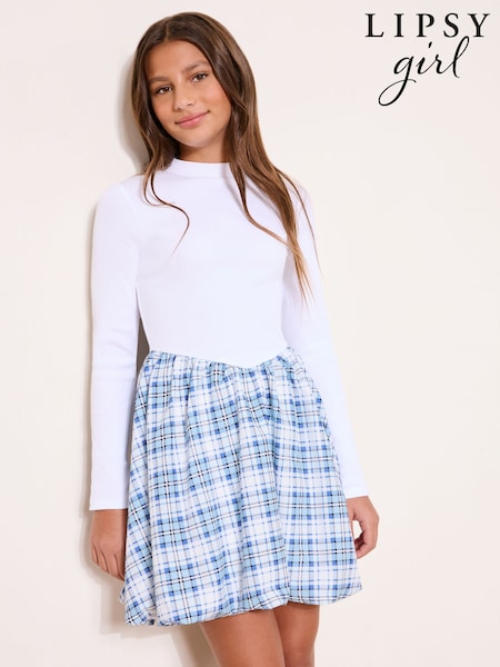 Lipsy White Check Long Sleeve 2-in-1 Puffball Dress (5-16yrs)