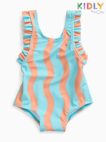 KIDLY by MORI Turquiose Orange Frill Detail Soft Swimsuit