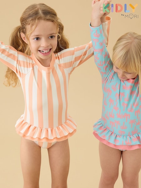 KIDLY by MORI Orange Frilled Long Sleeve Sunsafe Swimsuit