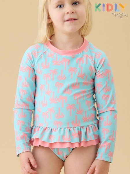 KIDLY by MORI Blue Frilled Long Sleeve Sunsafe Swimsuit