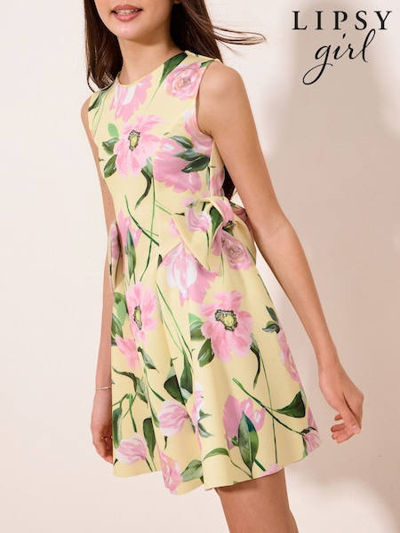 Lipsy Yellow Floral Scuba Bow Mini Dress (5-16yrs)