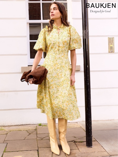 Baukjen Yellow Eva Printed Midi Dress