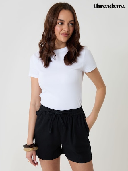 Threadbare Black Linen Blend Tie Waist Shorts
