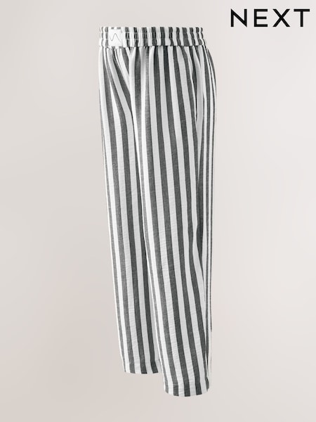 Grey/White Stripe Pull On Wide Leg Trousers with Linen
