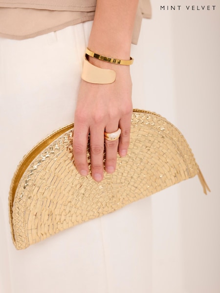 Mint Velvet Gold Bea Leather Woven Purses