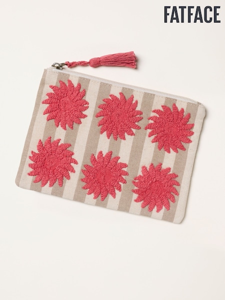 FatFace Beige Sun Embroidered Stripe Pouch