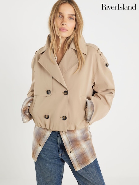 River Island Brown Short Bubble Hem Trench Jacket