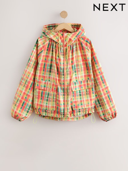 Joules Holkham Brown Check Waterproof Packable Raincoat With Hood