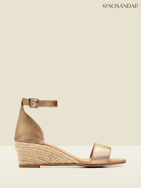 Sosandar Gold Leather Low Heel Wedge Espadrilles