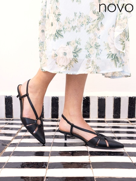 Novo Black Hally Ring Detail Low Point Slingback Courts